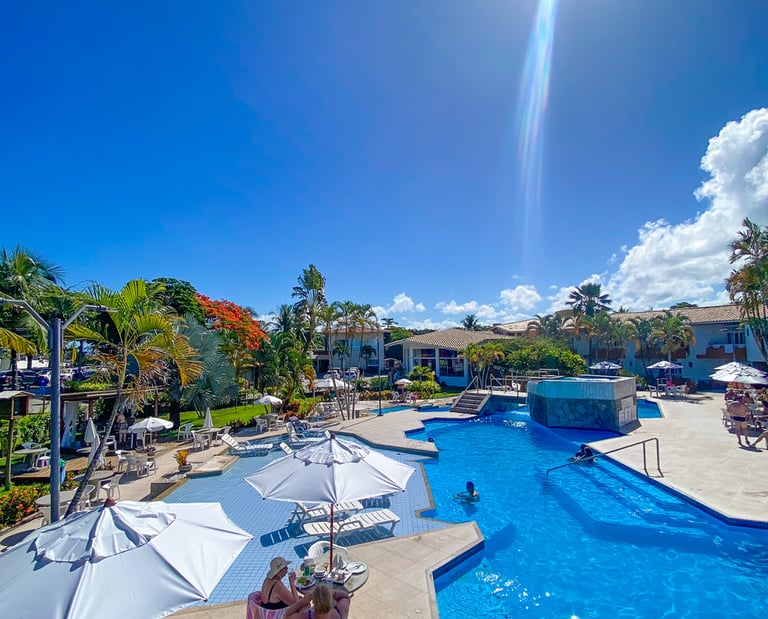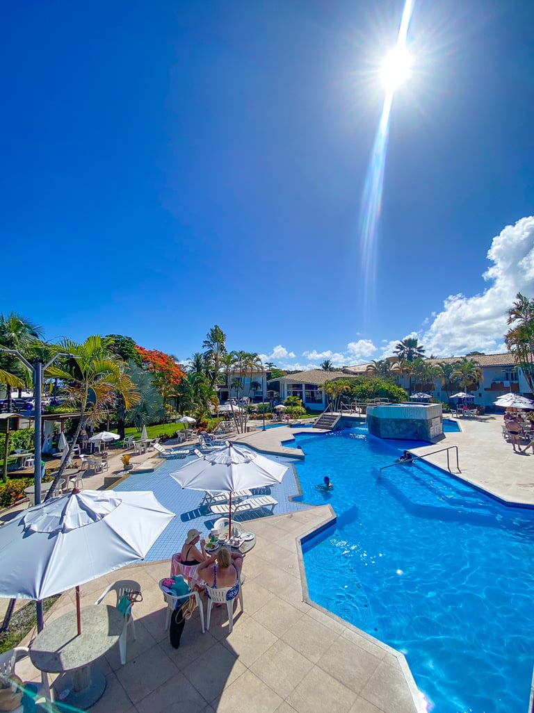 No Bosque do Porto, a diversão e o relaxamento estão garantidos com nossa piscina exclusiva, projetada para encantar hóspedes de todas as idades. Cercadas por belos jardins e uma atmosfera tropical, nossas piscinas são o lugar perfeito para aproveitar o sol da Bahia, relaxar após um dia de passeios ou criar momentos inesquecíveis com a família.